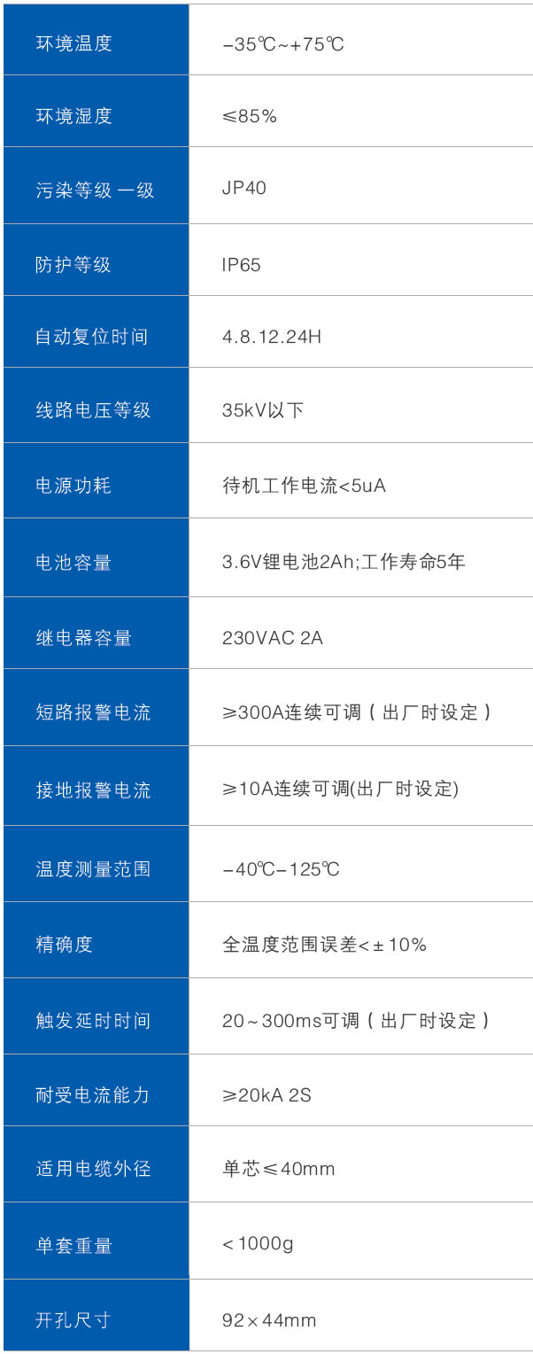 當供電線路有短路或接地故障發生時,短路或接地電流產生的電磁場變化,使固定在電纜上的傳感器中測量線圈產生脈沖信號,當脈沖信號的值的大小達到或超過設定的故障電流值時,故障指示器會自動記憶故障狀態,故障指示燈閃爍發出故障指示,同時通過遠程報警接口,將故障 信號傳遞給監控中心,工作人員通過故障指示信號能夠迅速準確地找到線路故障位置,及時排除故障,恢復電網供電。