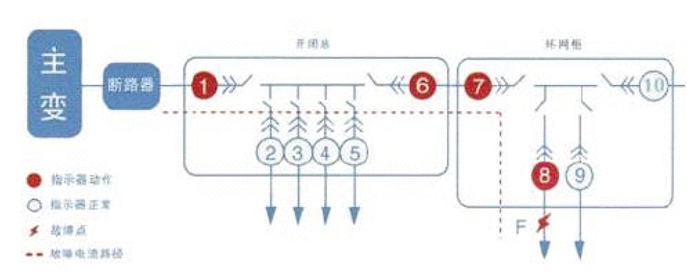 當線路發生短路或接地故障后,故障電流流經線路上安裝的故障指示器均翻牌或閃光指示,而非故障線路,非故障分支和故障點后的故障指示器不動作。運行人員從變電站出發,沿著故障線路查看故障指示器動作情況,確定故障范圍在最后一只動作的故障指示器和后段第一只未動作的故障指示器構成的區間,從而迅速確定故障區段,分支及故障點。帶通信功能的遠傳型故障指示器,不再需要去現場巡線查找故障,故障指示器與通信終端.后臺軟件配合,在3-5分鐘在監控主站或者手機上即可收到故障信息,確定故障區段。